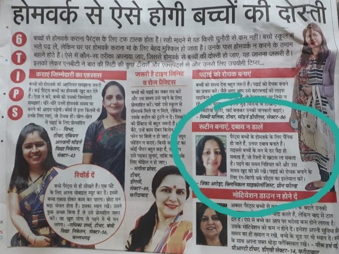 - P.M.S. School, Moradabad: All children of the school from Nursery till XII class were screened for Learning Disorders and Attention Deficit/Hyperactive Disorder (August, 2004).