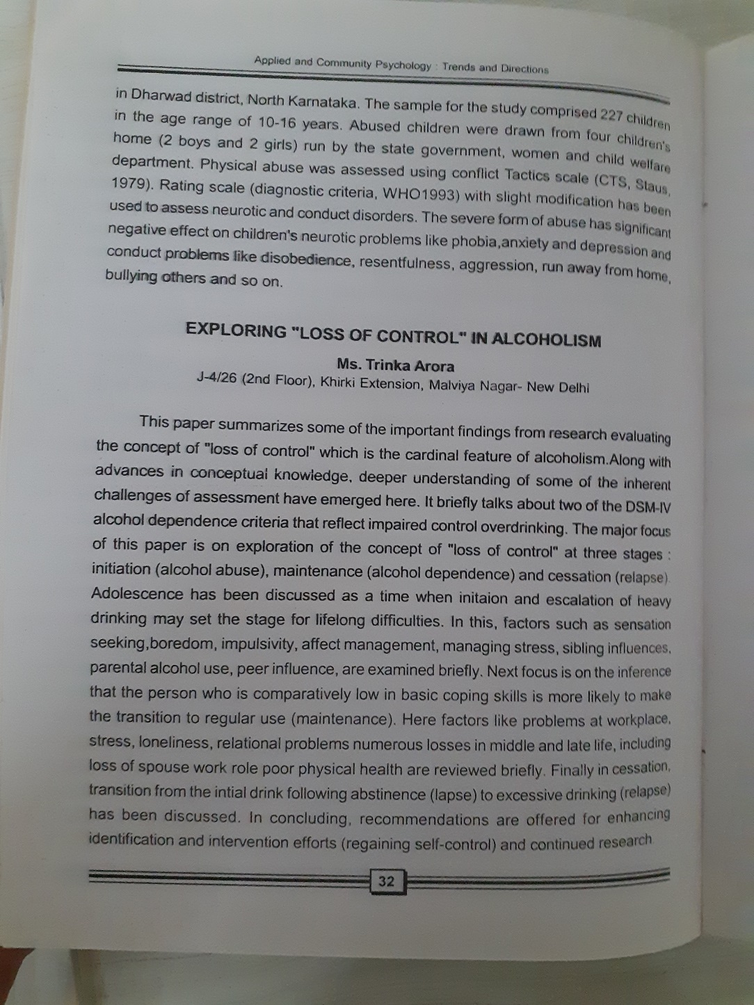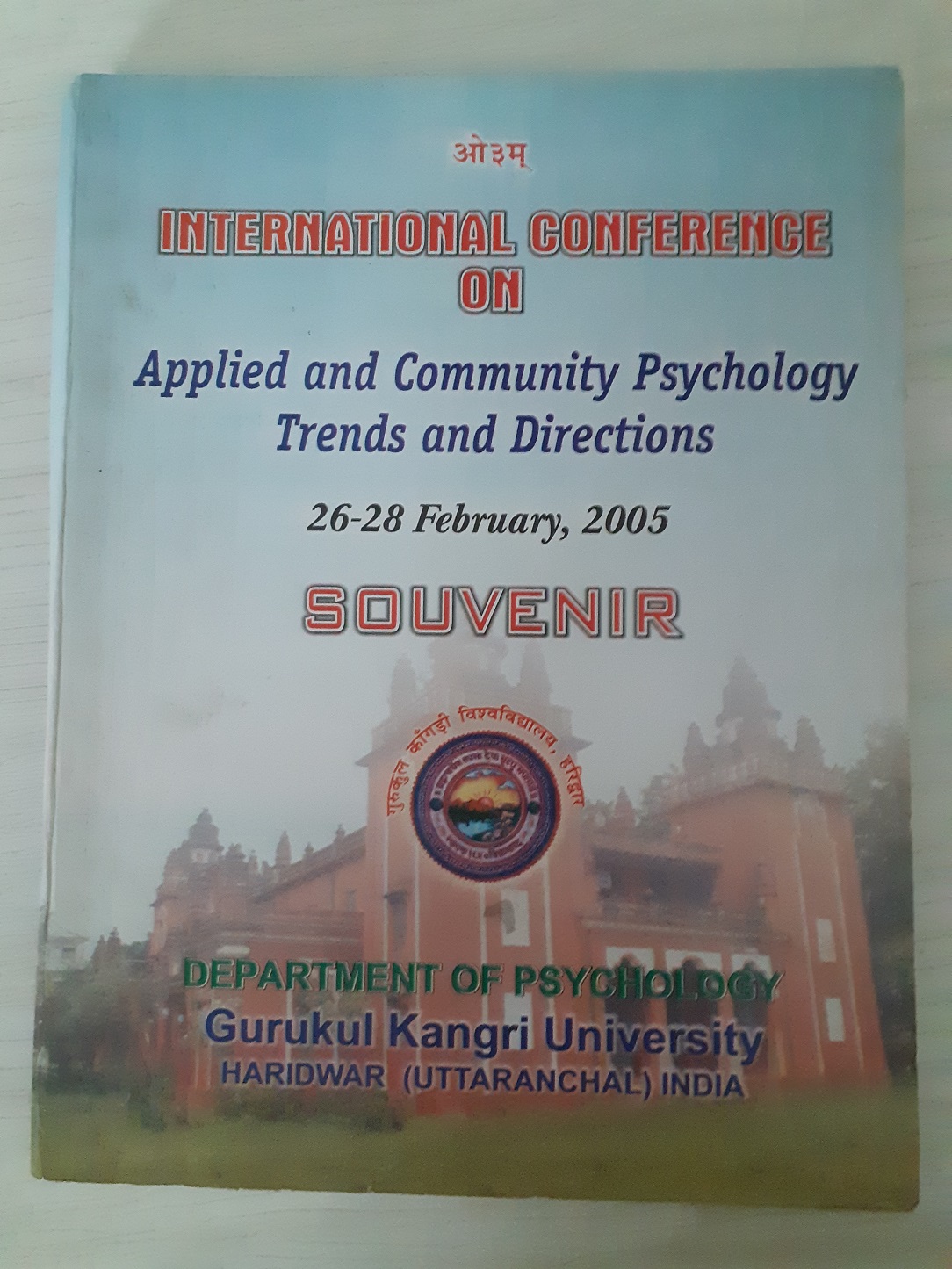 at International Conference on “Applied and Community Psychology: Trends and Directions” held at Gurukul Kangri University, Haridwar from Feburary 26- 28, 2005.