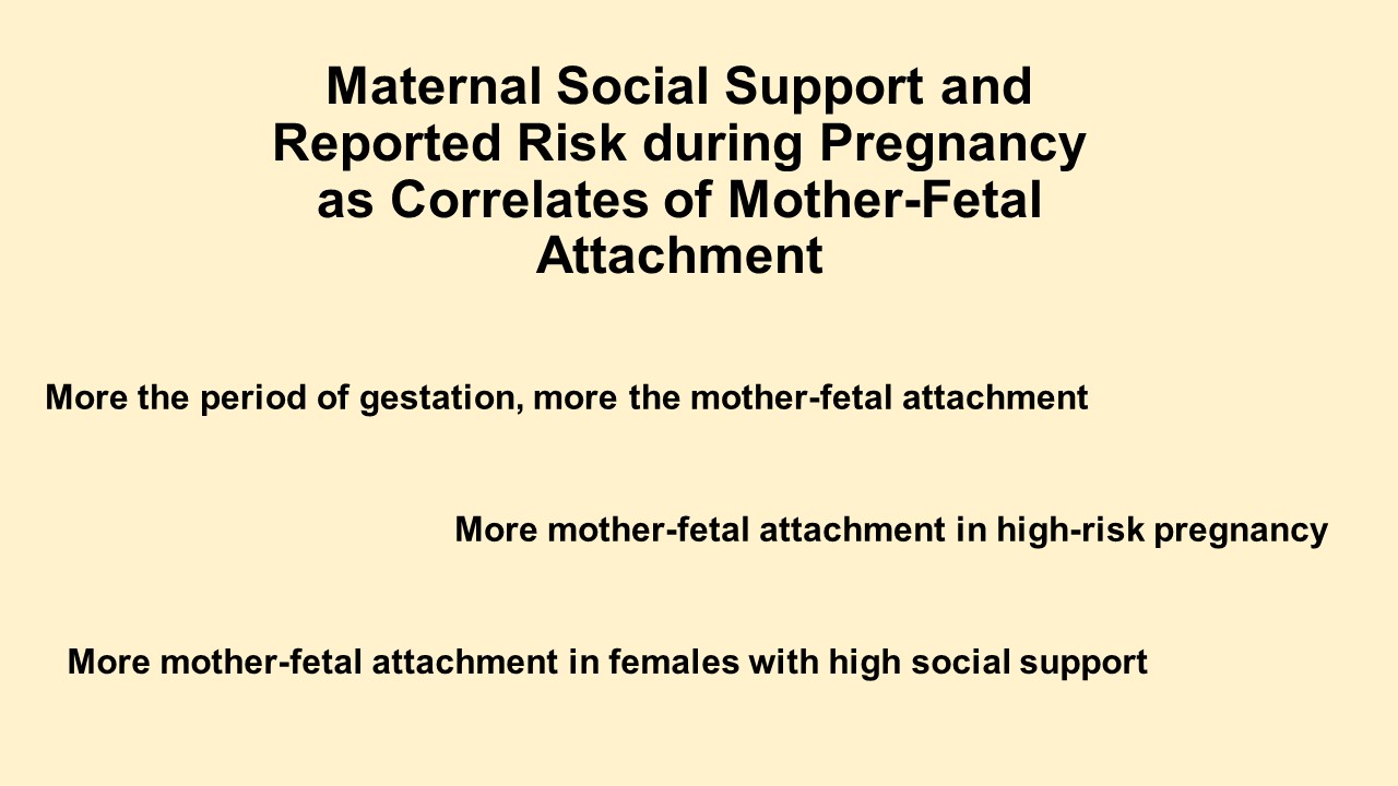 Paper on “Maternal Social Support and Reported Risk during Pregnancy as Correlates of Mother-Fetal Attachment”